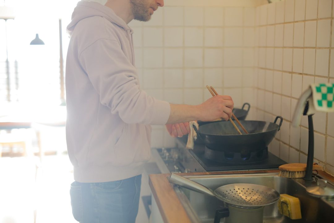 昼ご飯は夫の担当(夕飯は私です)。11時くらいになると、夫はキッチンへ向かい、20分ほどでチャチャっとできる料理をつくってくれます。料理が好きな夫は、この時間が小さな気分転換のようです。
