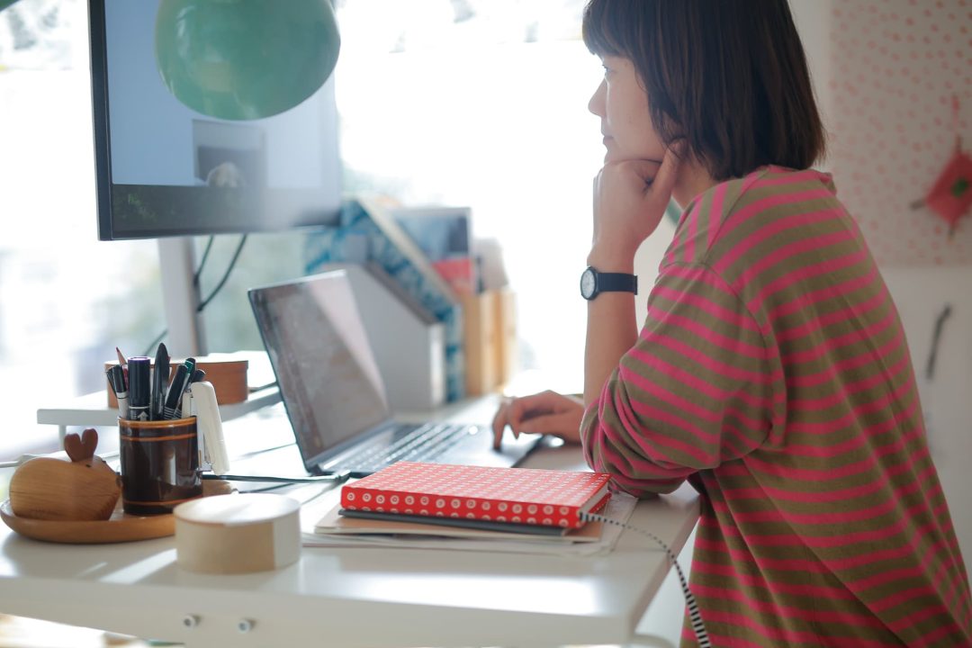 子どもたちが学校から帰ってくるまでに、仕事を終わらせるのが一日のゴール。タイムリミットがあるので、パソコンの前で全集中です。