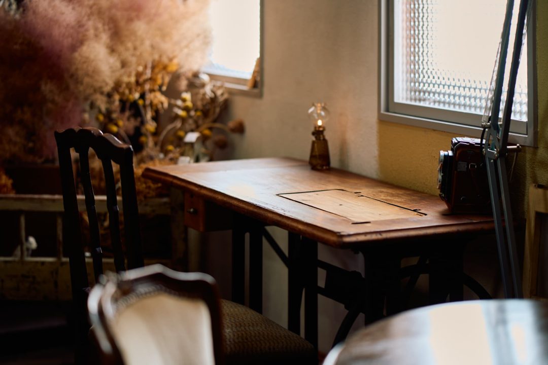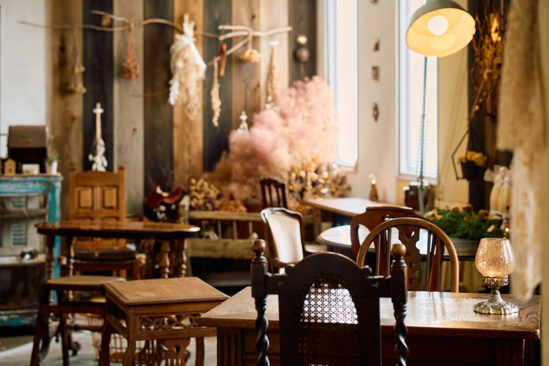 - 1階はカフェ、2階はレストランと、2つの形態で営業する鈴鹿市のお店。定休日はそれぞれ違う。今回取材したのはカフェで、アンティークな空間で非日常が味わえる。季節のフルーツを使ったケーキが人気。