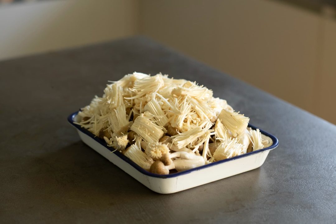 - 合わせて300g(撮影では、しめじ、えのき、エリンギを使用)