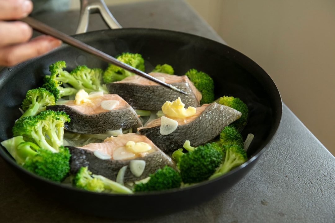 フライパンでつくる鮭とブロッコリーのバター蒸し