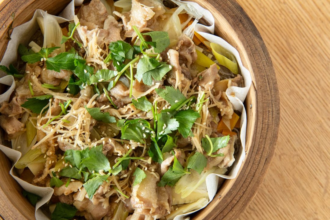 豚肉と緑豆春雨の甘辛せいろ蒸し