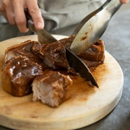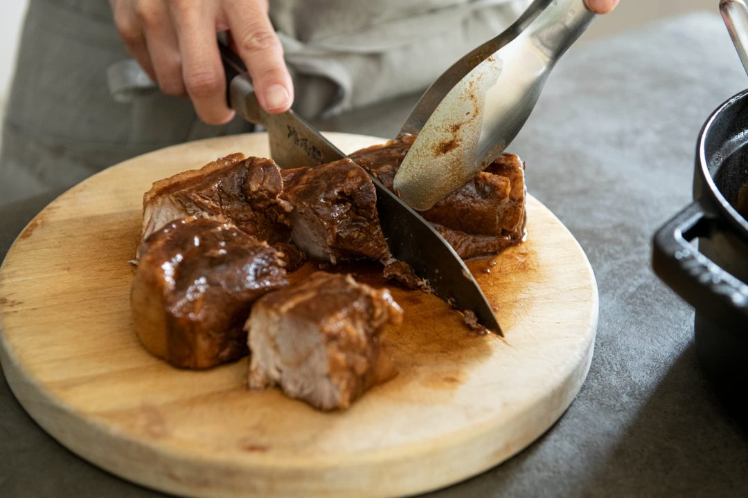 今回は、中部地域を意識して発酵食品の赤味噌を使って角煮にチャレンジ。味わいにコクと旨味が出るだけでなく、肉をやわらかくする効果もあるのです。ホロホロとくずれそうにやわらかい豚バラ肉の角煮ができますよ!