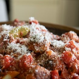 トマトソースもミートボールもペンネも、みんな大好きですよね。友人や仕事仲間などと大勢で食卓を囲む時や、息子が友人を連れてきた時には、大きなグラタン皿につくって出すと、まず歓声!そして、あっという間になくなってしまうほどの人気メニューです。