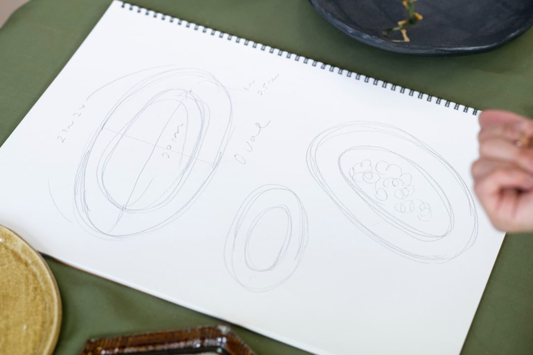 初めて会ったとは思えないスピード感で、器のスケッチが出来上がっていきました。