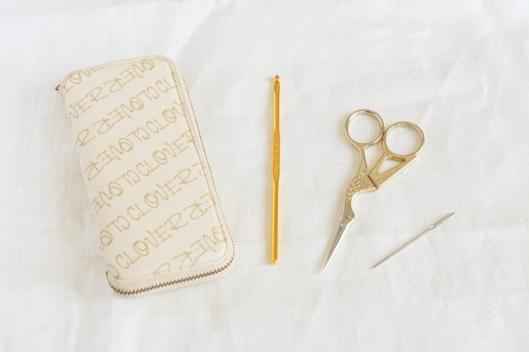 かぎ針の材質には竹や金属、プラスチックなどがあり、私は程よく重くて糸のすべりが良い金属製のかぎ針を愛用しています。人によって重さやすべり具合の好みは異なるので、作品づくりを通していろいろな道具を試し、しっくりくるお気に入りを見つけてみましょう。
