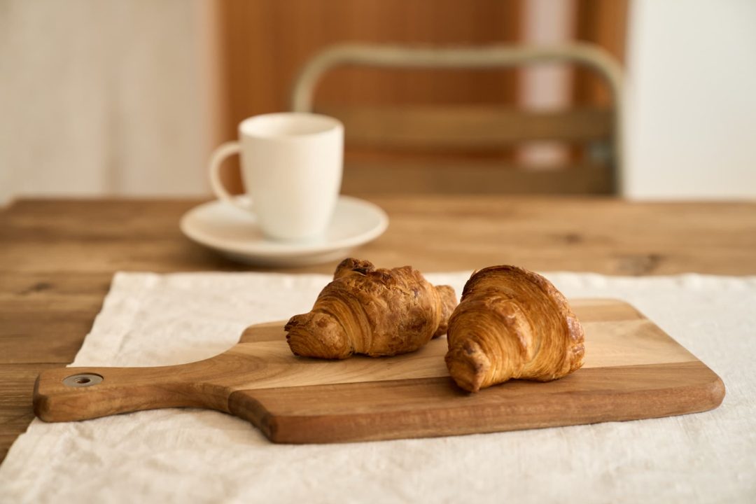 この4種の中では、もっともバターを多く使っているので、バターの風味をしっかりと楽しめます。何層にも重なった生地が焼成することでふくらみ、サクサクした食感をつくり出します。コーヒーや紅茶とともに朝食に、チーズやハムをはさんでサンドイッチに、あるいはアーモンドクリームやシロップをつけてデザートになど、幅広いメニューに使われます。