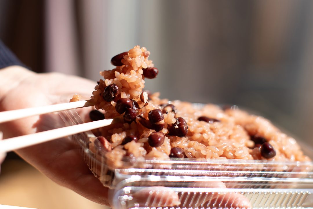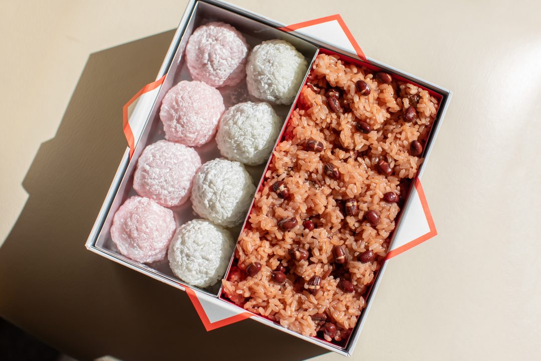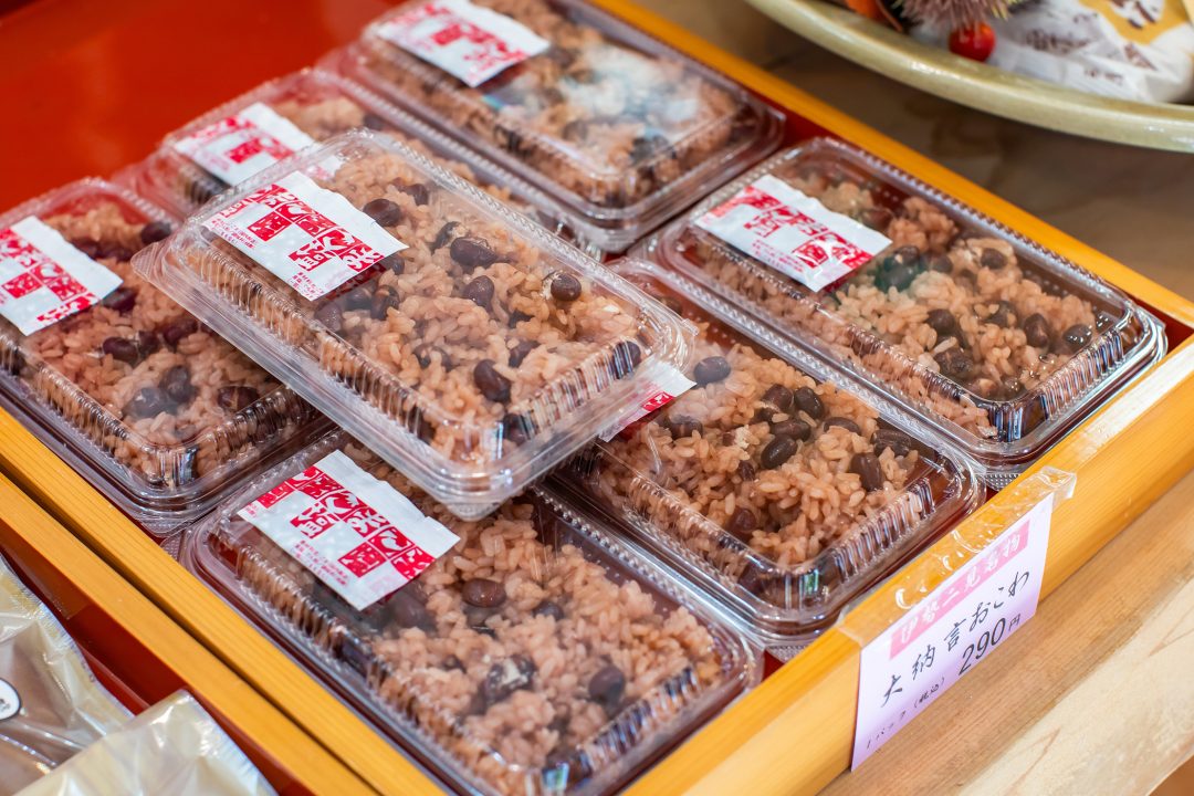 また、「くうや茶屋餅」と「大納言おこわ」をセットにした商品も地元では定番人気なのだとか。予約販売のみとなりますが、お祝い事の際によく使われるそうです。蓋を開けた時のあざやかな色合いは、幸福感に満ち溢れています。おめでたい行事やお祝い事の時にぜひオーダーしてみてはいかがでしょうか。