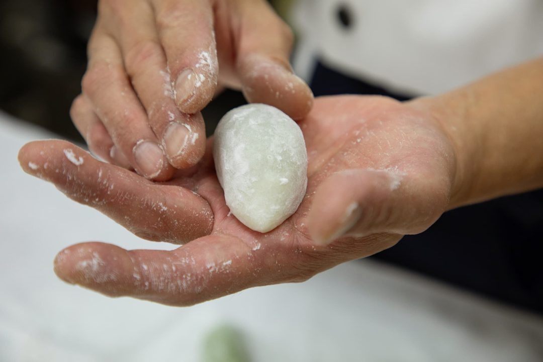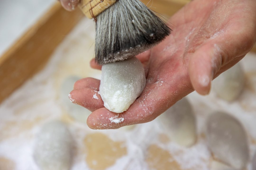 「ちいちい餅」とはなんてかわいらしい名前でしょうか。これは静岡市清水区(旧清水市)を中心とした地域で昔から愛されてきた和菓子で、いわゆる大福餅なのだそう。この地域では、庵昇堂以外の和菓子店でも「ちいちい餅」がつくられています。各店舗によって多少の違いはあるそうですが、基本的なつくり方は一緒。