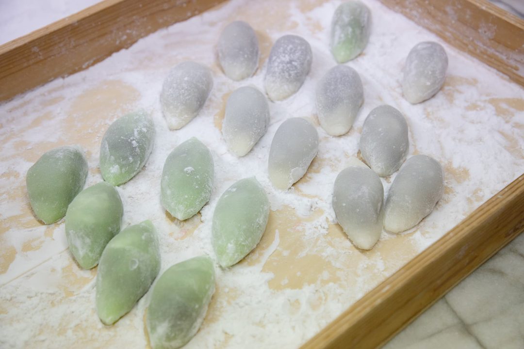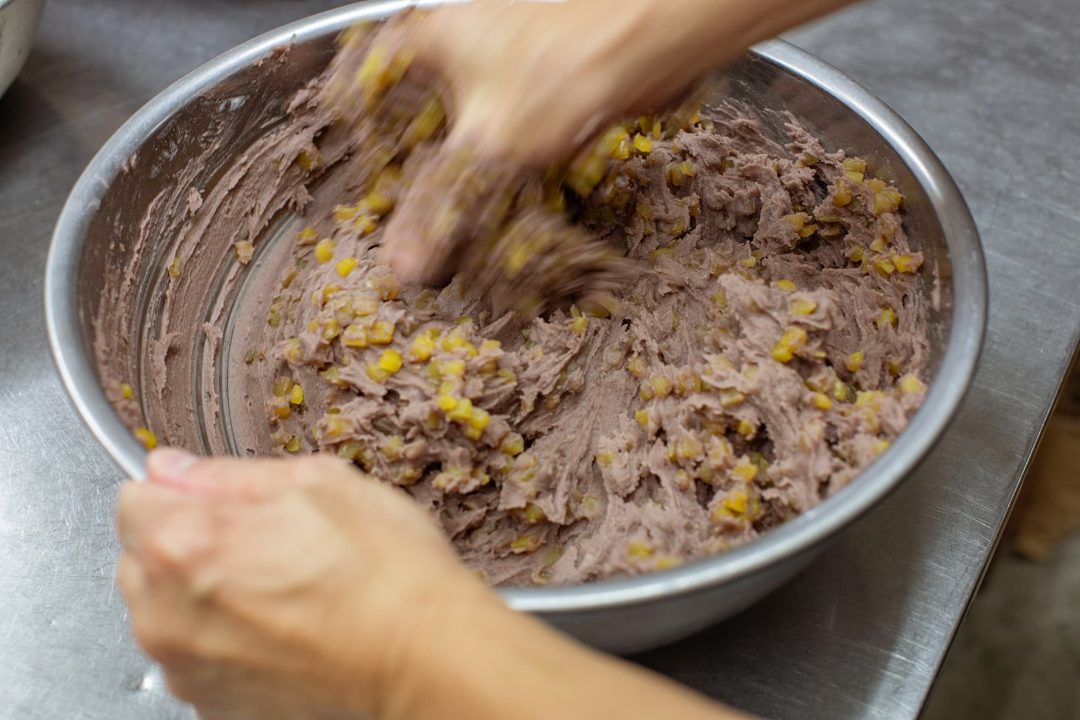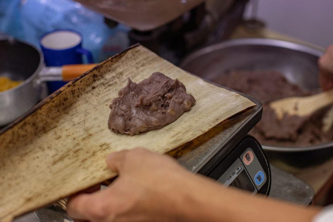 庵昇堂では、年末年始になると、栗が入ったものをはじめ、くるみや煎茶の羊羹などが店頭に並びます。あんと栗をしっかりと手でこねてから、竹皮にくるむのですが、あんがやわらかくキメ細かいことから、蒸し上げた羊羹の口当たりはとてもやさしく、奥深い味わいになっています。