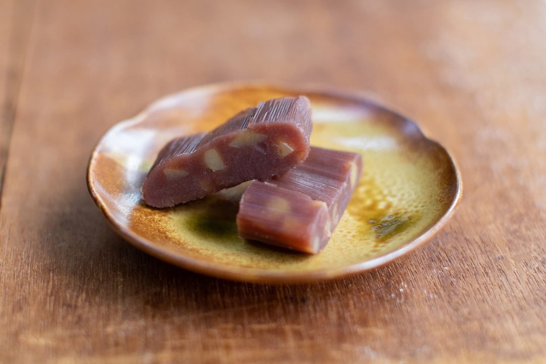 竹皮にあんをくるんで蒸す羊羹。東海道の宿場町が数多くある静岡県では、土産品としてよく見られる和菓子です。