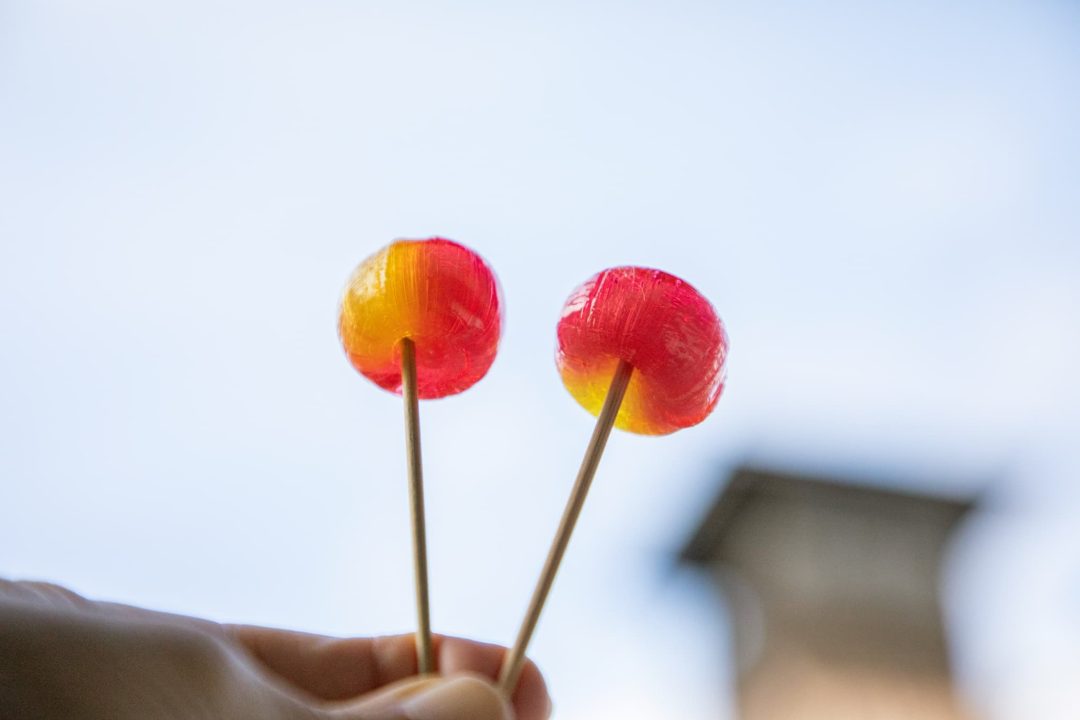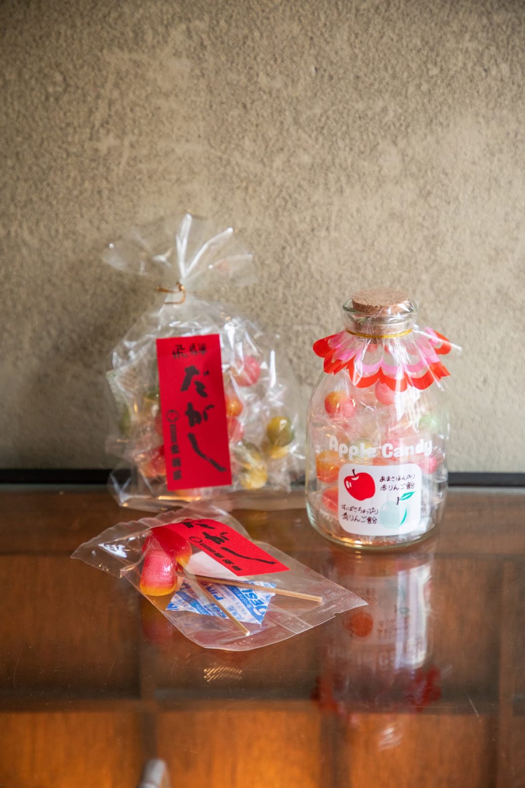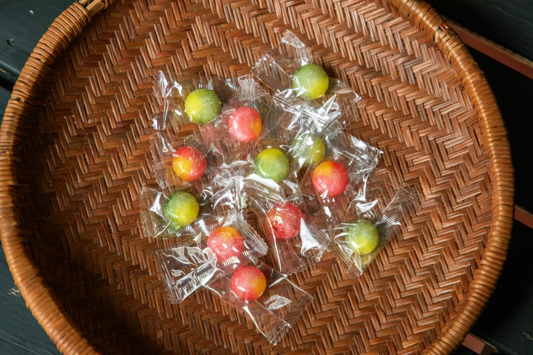 りんごの風味がふわっと香り、優しい甘さが詰め込まれたひと粒。棒付きのタイプは大きく、個包装のタイプは小さめサイズで赤と緑の2色があります。