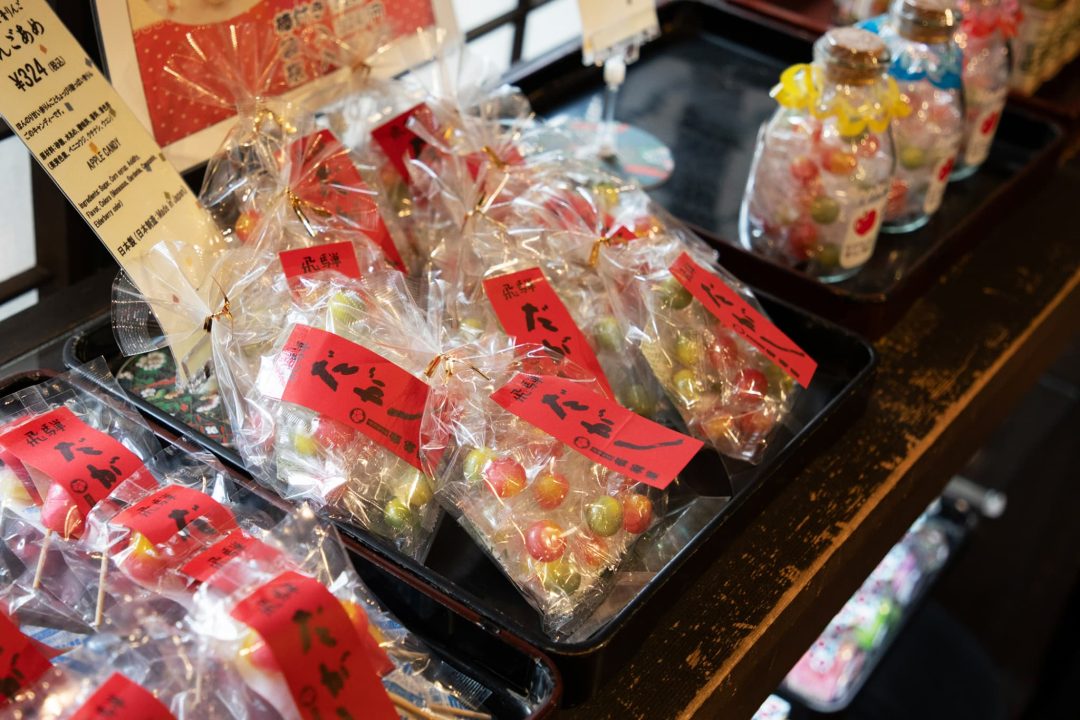 - 高山市の中心地にのれんを掲げる駄菓子店。太い梁と柱、囲炉裏、柱時計など、飛騨高山の古き良き建築の雰囲気を伝える店内には、飛騨の駄菓子が所狭しと並べられており、選ぶのも楽しい。飲食コーナーには囲炉裏があり、こちらも風情たっぷり。