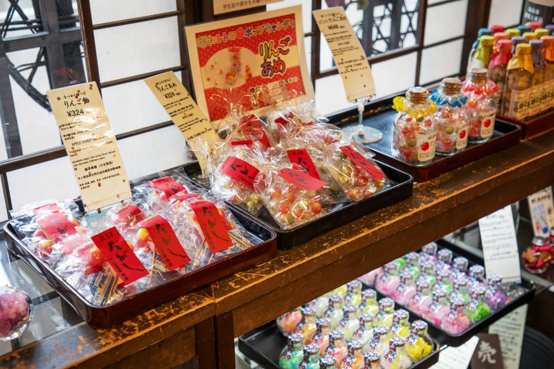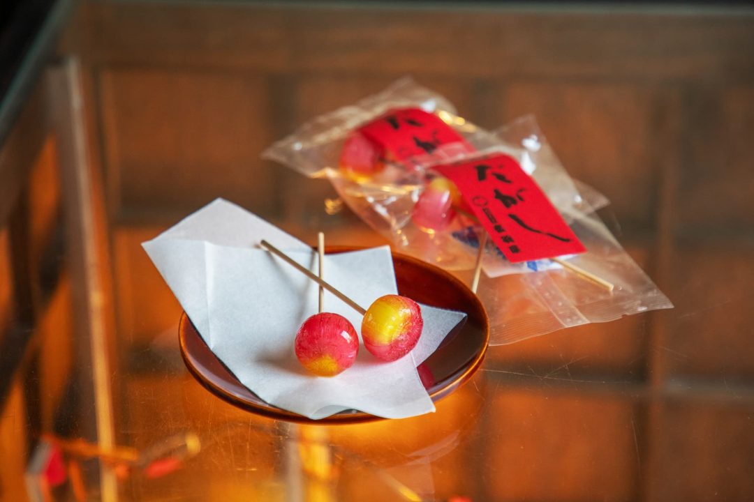 今回ご紹介するのは、「りんごあめ」。飛騨地方の駄菓子といえば、穀物を使った焼き菓子など素朴なイメージがありますが、音羽屋はもともと飴屋としてスタートした店。りんごあめは、店のルーツを感じる菓子として、昔から伝わる製法をほぼそのままに、大切につくり継がれてきた品です。